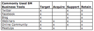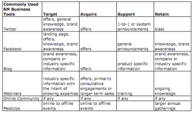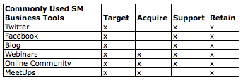 Then take a look at the various types of Social Media outlets targeted in your strategy and understand which tools are most effective at what point in the customer interaction: