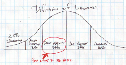This sounds like a completely obvious statement, I know. But think about the average consumer, who is more risk-averse than not, and is most likely living on the back half of the Technology Adoption Lifecycle (Late Majority or Laggards).